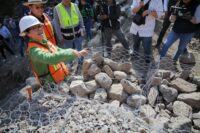 AZUCENA CISNEROS IMPULSA OBRAS DE PROTECCIÓN EN SAN ANDRÉS DE LA CAÑADA *Obras que frenan las aguas broncas y protegen a la población Una piedra colocó la alcaldesa Azucena Cisneros Coss en la presa de gavión que construye