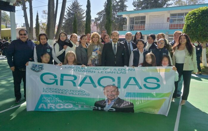 GOBIERNO DE ATIZAPÁN IMPULSA OBRAS EDUCATIVAS Y LLAMA A LOS PADRES A FORTALECER LA FORMACIÓN EN EL HOGAR *Pedro Rodríguez Villegas entregó arcotechos y aulas digitales, subrayando que la educación es la base para la