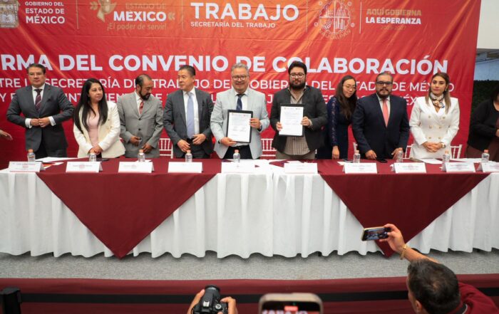 NAUCALPAN Y GEM FIRMAN CONVENIO PARA FORTALECER LA JUSTICIA LABORAL *Compromiso conjunto por la paz social y los derechos laborales El presidente municipal Isaac Montoya Márquez y el secretario del Trabajo estatal, Norberto Morales