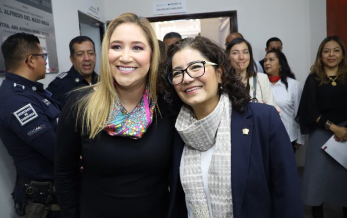 LA GOBERNADORA DELFINA GÓMEZ RECIBE AYUDA HUMANITARIA DEL SUTEYM PARA FAMILIAS AFECTADAS POR LLUVIAS *GEM y SUTEYM suman esfuerzos solidarios ante contingencias La gobernadora Delfina Gómez Álvarez, acompañada por el secretario de Seguridad, Cristóbal